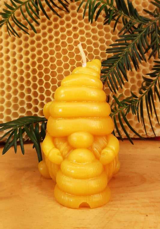 handgerollte Bienenwachskerze, Tischkerze mit 5-reihen Kringelchen