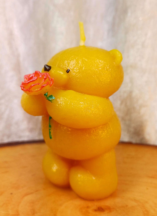 Bienenwachskerze Bär mit Blumenstrauß 5x8 cm,