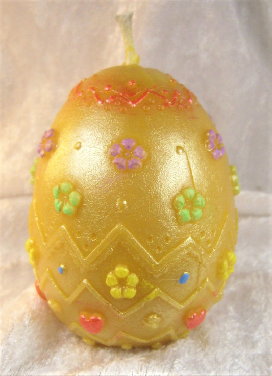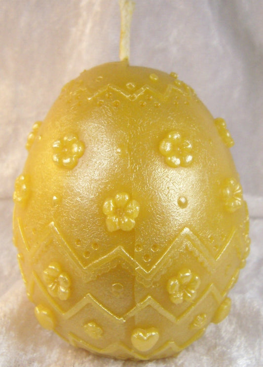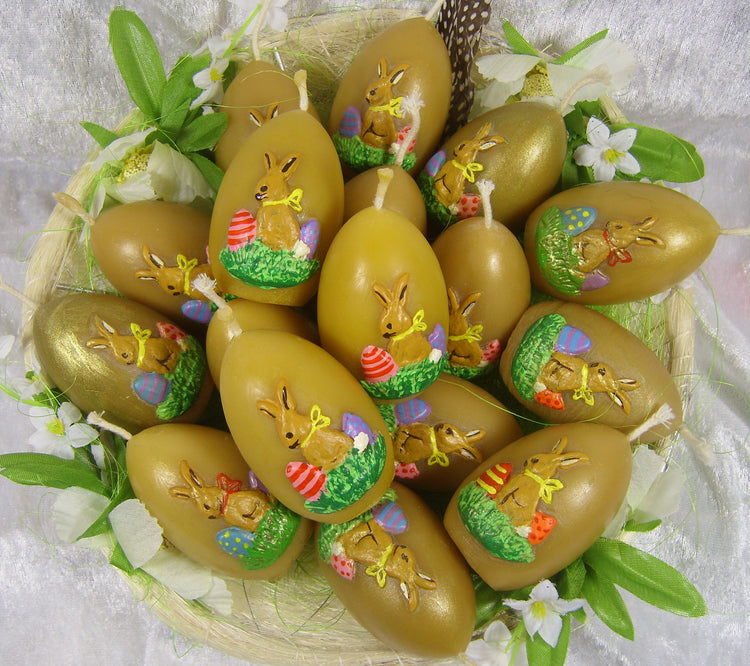 Bienenwachskerze großes Osterei mit Hasen, goldfarben