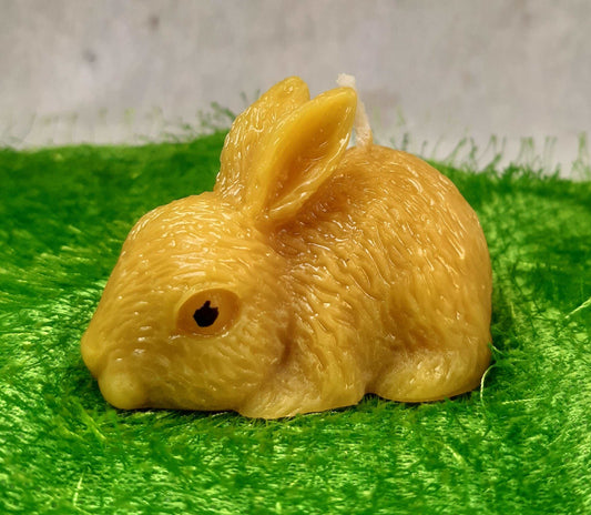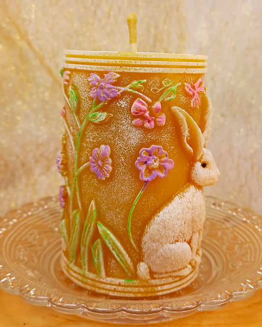 Osterhase auf Blumenwiese, Bienenwachskerze Stumpen für Ostern