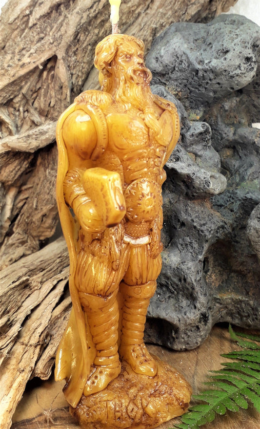 Kerze Thor, Donar m. Mjölnir, mit Thorshammer, Bienenwachs 5x12cm