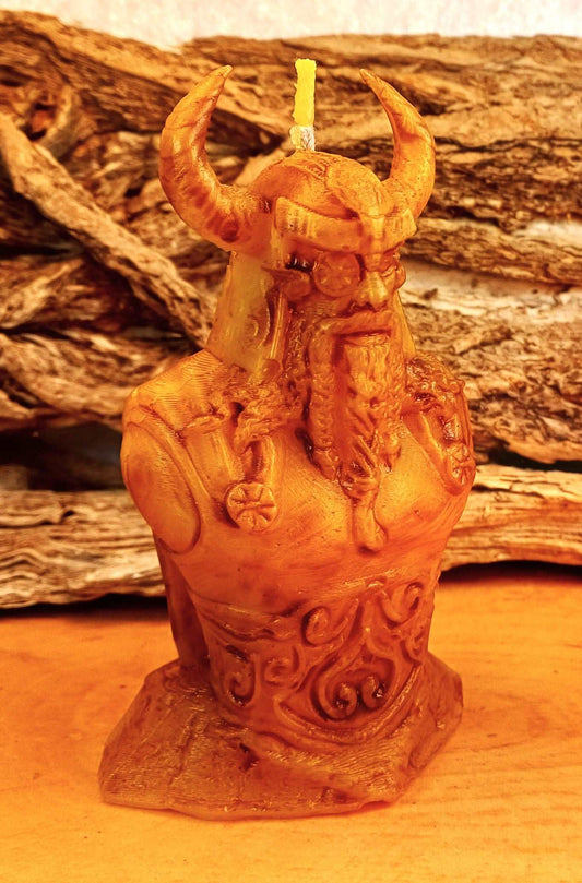 Kerze Odin, Wotan, Krieger mit Hörner, Bienenwachs 5x12cm Wikinger, Germanen